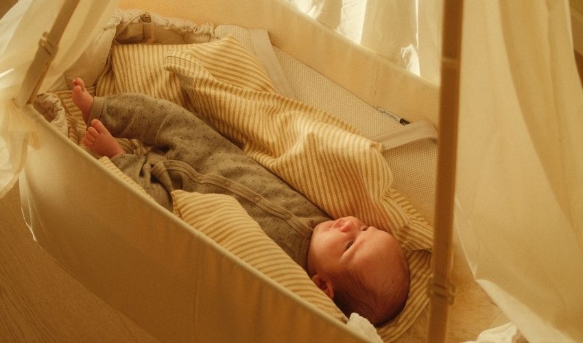 Die Wiege mit Baldachin ist für Babys konzipiert, die leicht überstimuliert werden. Durch das sanfte Abschirmen von Licht und visuellen Reizen entsteht eine ruhige, kokonartige Umgebung, die einen tieferen und erholsameren Schlaf unterstützt.